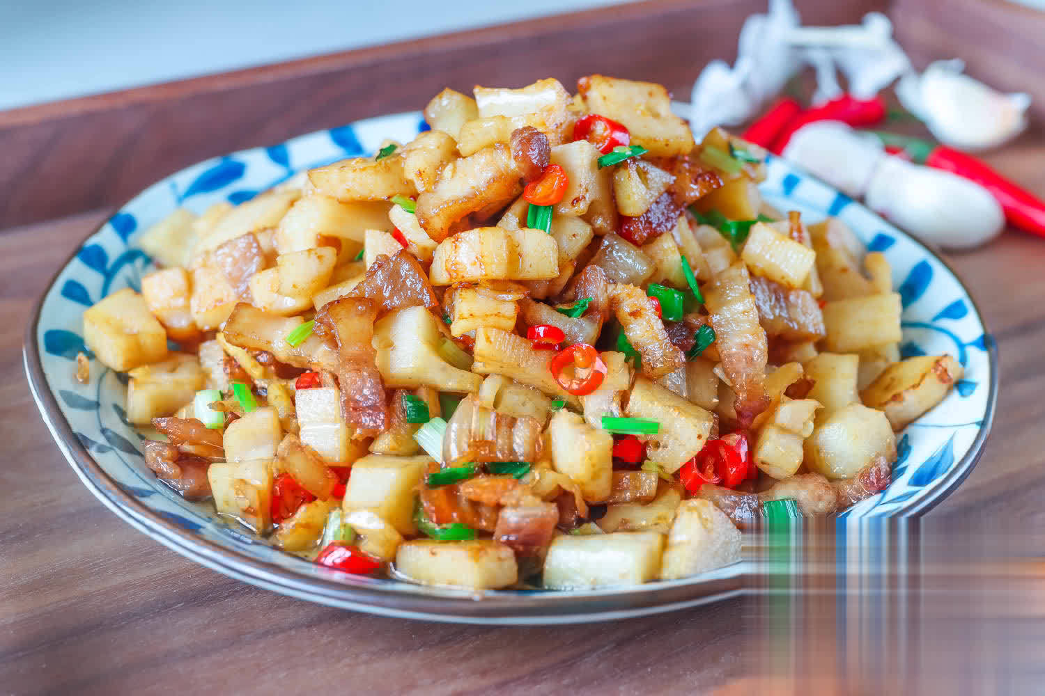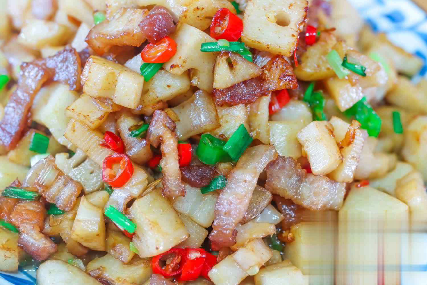 【莲藕炒肉】食材:莲藕,五花肉,小米椒,小葱,生抽,蚝油,食盐,食用油,