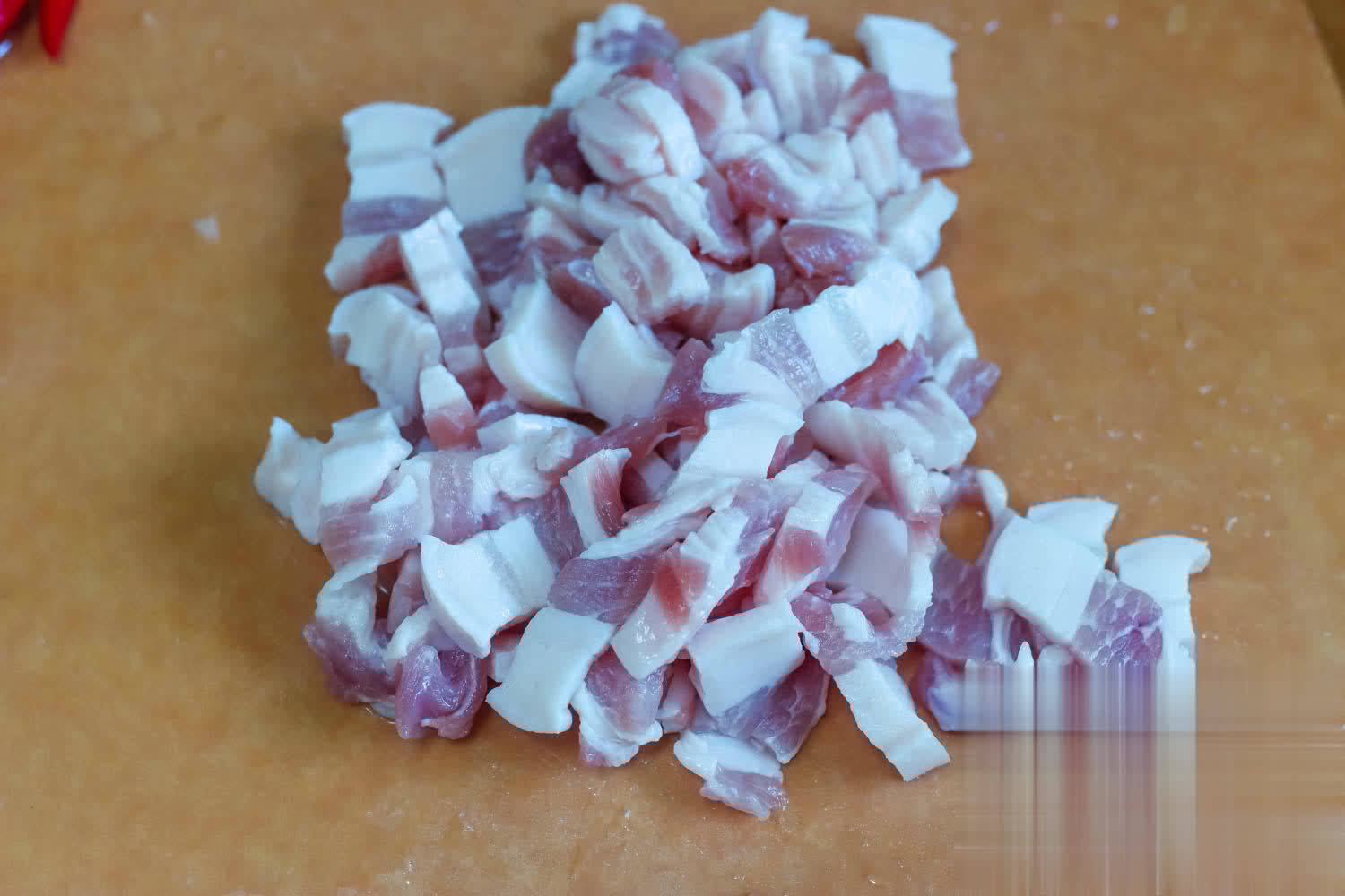 1、五花肉清洗干净,切成薄片。提倡用五花肉,会比用瘦肉炒出来更好意思味。