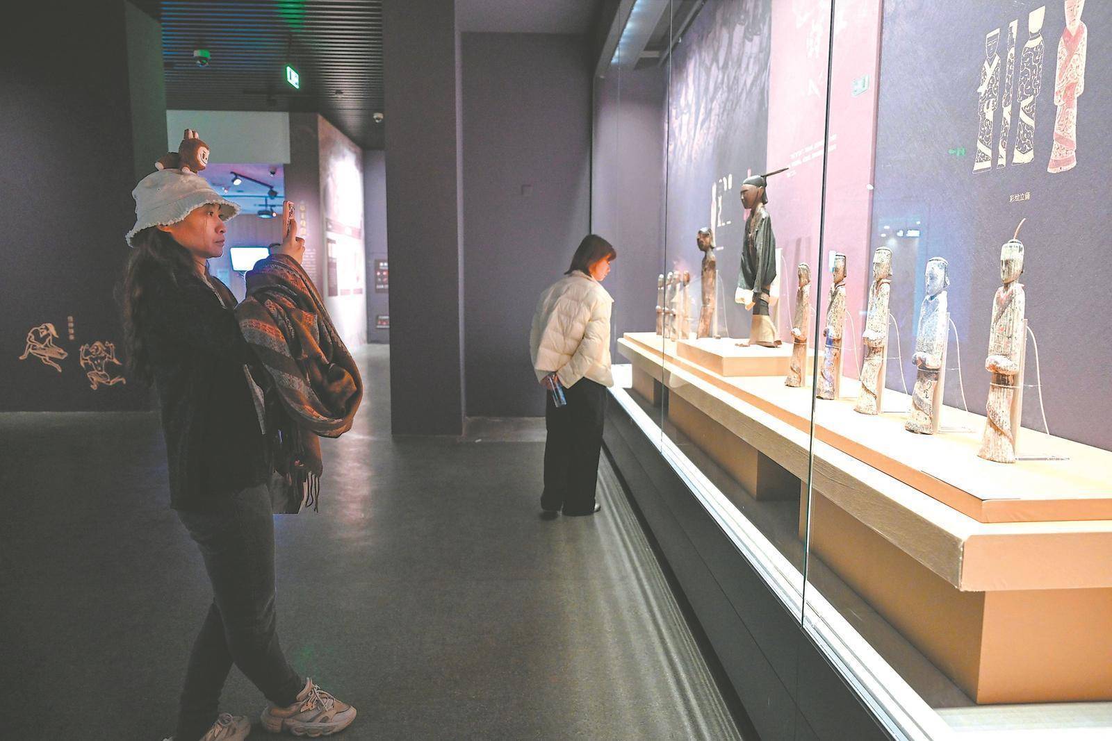 2025年12月7日至2026年3月8日,由安徽博物院和湖南省博物馆主持的“马王堆——西汉·一个家眷的‘长生之梦’”特展在安徽博物院蜀山馆(新馆)推出。本次展览系统展出185件(套)马王堆汉墓珍品,器物类别涵盖漆器、陶器、简牍、帛画、丝织品等,辅导不雅众穿越两千年的尘封岁月,晓悟汉代时髦的后光。图为12月6日,市民参不雅预展览。